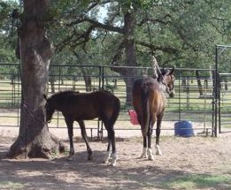 Foals are imprinted at birth and then handled daily and taught at an early age the basics of becoming a good horse partner. Colts learn patience tied to the "thinking tree".
